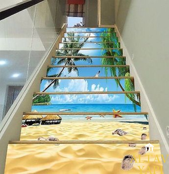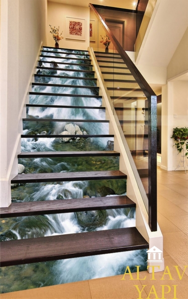 Bu sayede bu görüntüleri cam baskı veya duvar kağıdı baskısı olarak hazırlayıp merdiven yükselticilerine yapıştırıyoruz. Elde edilen 3d merdiven basamak fotoğrafları evinize bambaşka bir hava katıyor.