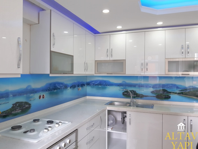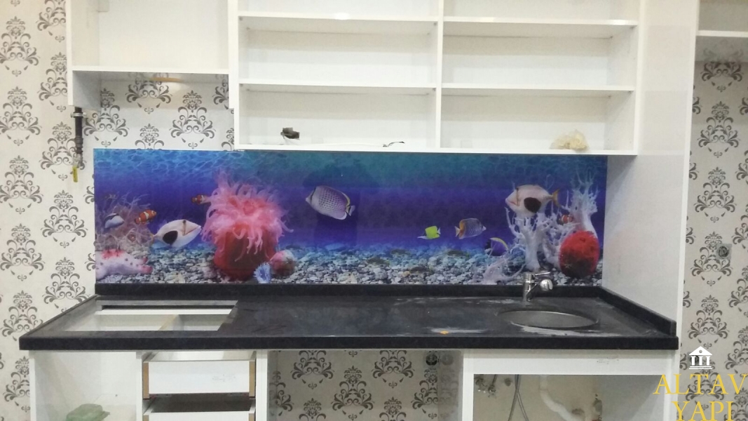 Üç boyutlu resimli mutfak tezgah arası cam paneller inşaat sektörünün yükselen yıldızları arasında yer almaktadır. Yeni nesil iç dekorasyoncular ve iç mimarlar mutlaka ama mutlaka bu muhteşem ürüne çalışmalarında yer vermektedir. Yıllarca mutfak tezgah aralarını sade fayanslarla kullandık. Düz yapısı ve silinip yıkanması açısıından tercih ediliyor. Belli bir süre sonra fayansslarda keşerme ve yıpranma olunca tekrar kırdırıp tekrar yaptırıyorduk. Mutfak tezgah arası cam panel çalışmaları cam üzerine baskı olduğu için 15 yıl boyunca gönül rahatlığıyla kullanabilirsiniz. Yok sıkıldınız değiştirmek mi istiyorsunuz çok basit sadece istediğiniz görseli seçip milimetrik ölçülerler sadece 45dk. teslim alıyorsunuz. Hem zamandan tasarruf ediyor hem paranız cebinizde kalıyor ve en önemlisi daha şık bir mutfağa sahip oluyorsunuz.