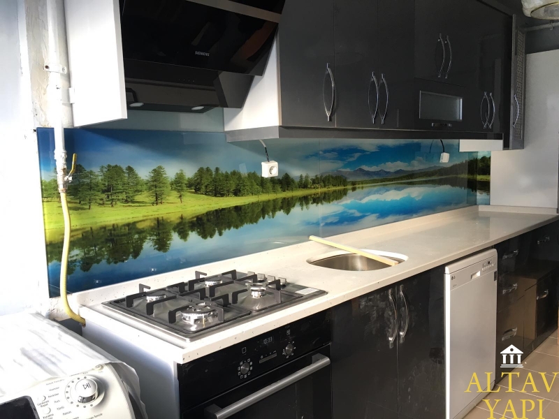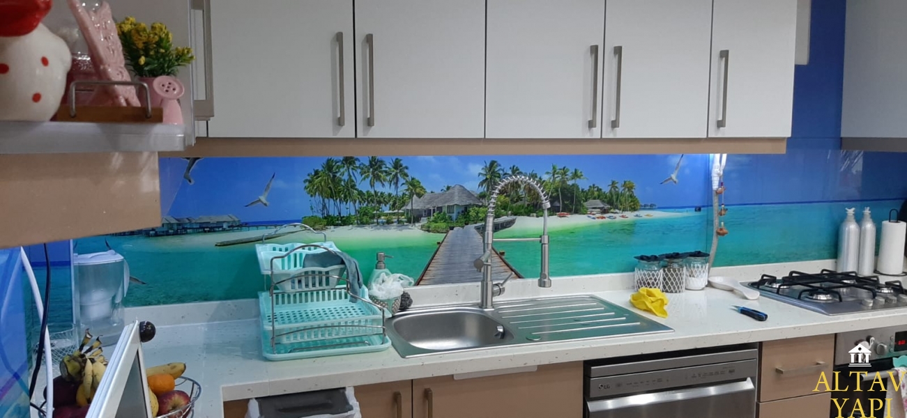 Tezgah Arası Cam, Cam Mutfak yada Mutfak tezgah arası cam panel olarak adlandırılan bu sistem Mutfak tezgah arasına belirli ölçülerde cam baskı üzerine yapılan UV Baskı ile kaplandıktan sonra modül led yapısı kullanılarak görselin cama yansıtılması olarak adlandırılır. İstediğiniz görselin yada fotoğrafın mutfak tezgah arasına aktarılması oldukça güzeldir. Mutfak tezgah arası cam paneller, Fayans ve seramiğe nazaran daha ekonomik olması ve daha şık durması nedeniyle tercih edilmektedir.